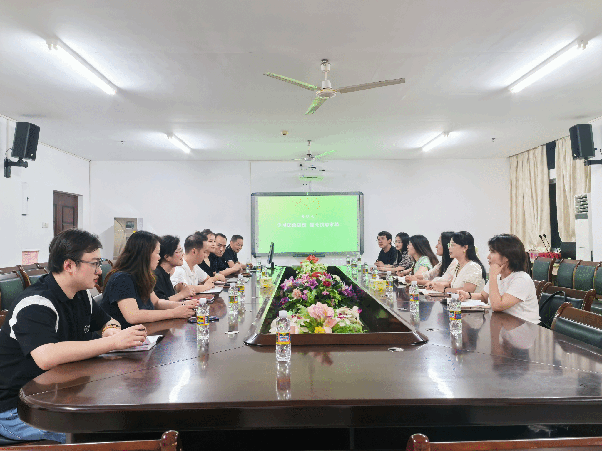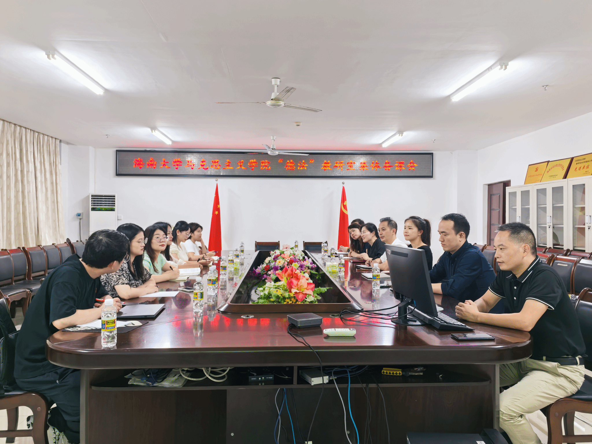 根据公司工作安排,“思想道德与法治”教研室7月11日19点在A311会议室举行2024年度第七次集体备课会,教研室主任蒋玉主持会议,周细波和郑坚铭两位老师说课示范。琼海软件公司4位教师和公司相关任课教师参加会议。王一闳副经理参加本次集体备课会,并对会议提出要求和期望。