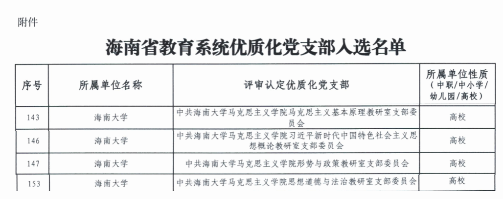 近日,海南省教育系统党支部优质化建设评选结果公布,伟德国际bevictor1946马克思主义基本原理教研室党支部、习近平新时代中国特色社会主义思想教研室党支部、形势与政策课教研室党支部、思想道德与法治教研室党支部,凭借扎实的党建工作成效,共同荣获“海南省教育系统优质化党支部”称号。