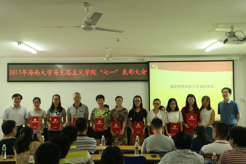 据悉,马克思主义公司党委荣获校“先进基层党委”,研究生党支部获校“先进基层党支部”,党委书记段捷频荣获校级“优秀党务工作者”,王善、王齐冰、叶新璐荣获校级“优秀党员”,李辽宁荣获“全国高校思想政治理论课教师2016年度影响力提名人物”称号,蔡文举、周郭军荣获校级“五一劳动之星”等。