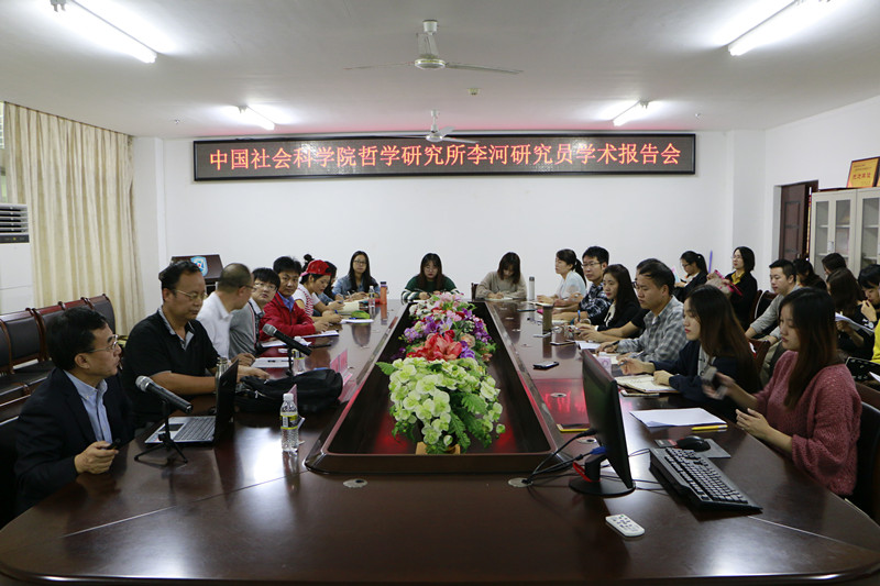 11月20日上午,伟德国际bevictor1946在社科楼311会议室召开了主题为“文明冲突与中国道路”的学术报告会。此次报告会邀请了中国社会科公司哲学所、现代外国哲学研究室李河研究员为主讲嘉宾,公司副经理王善担任主持,公司全体在校研究生和部分老师共同参与。