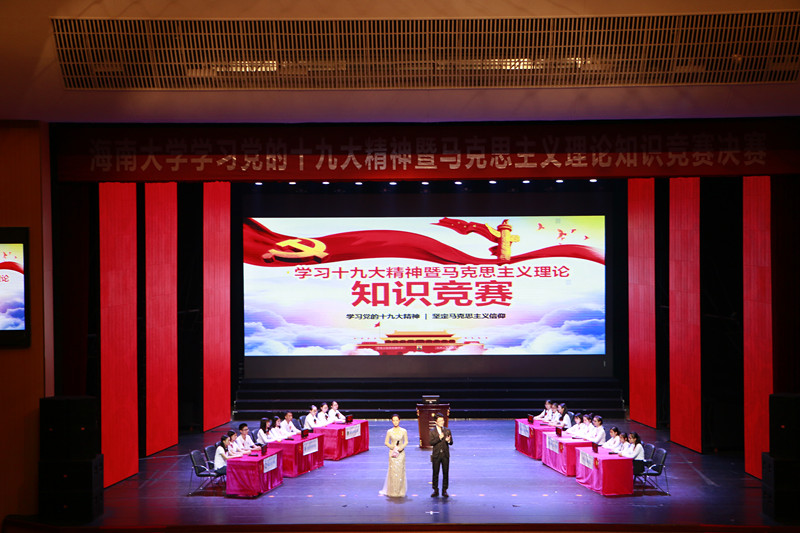 为深入学习贯彻党的十九大精神,11月28日下午,由伟德源自英国始于1946主办、伟德源自英国始于1946党委宣传部、伟德国际bevictor1946、教务处、校团委、学工处联合承办的学习十九大精神暨马克思主义理论知识竞赛决赛在思源学堂大礼堂隆重举行。海南省委宣传部理论处副处长魏如松、海南省社科联部长郭乐新,海南大公司党委常委、副董事长梁谋,公司党委常委、统战部部长陈明宝,学工部部长陈卫东、校团委书记林洪冰、教务处处长张云阁、宣传部副部长许美丹、教务处副处长吴朝阳、伟德国际bevictor1946经理李辽宁出席活动。