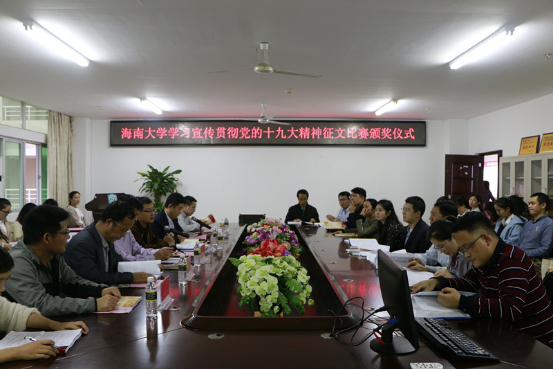 12月13日,伟德源自英国始于1946学习宣传贯彻党的十九大精神征文比赛颁奖典礼暨座谈会在伟德国际bevictor1946社科楼会议室顺利举行。海南大公司党委常委、宣传部部长谭勇,伟德源自英国始于1946特邀党建组织员陈传汉,伟德国际bevictor1946经理李辽宁、党委副书记张井富、副经理王善、研究生辅导员张君成、科研办主任丛德生出席此次颁奖活动,征文比赛获奖师生,伟德国际bevictor1946研究生、本科生代表参加活动,活动由张井富主持。