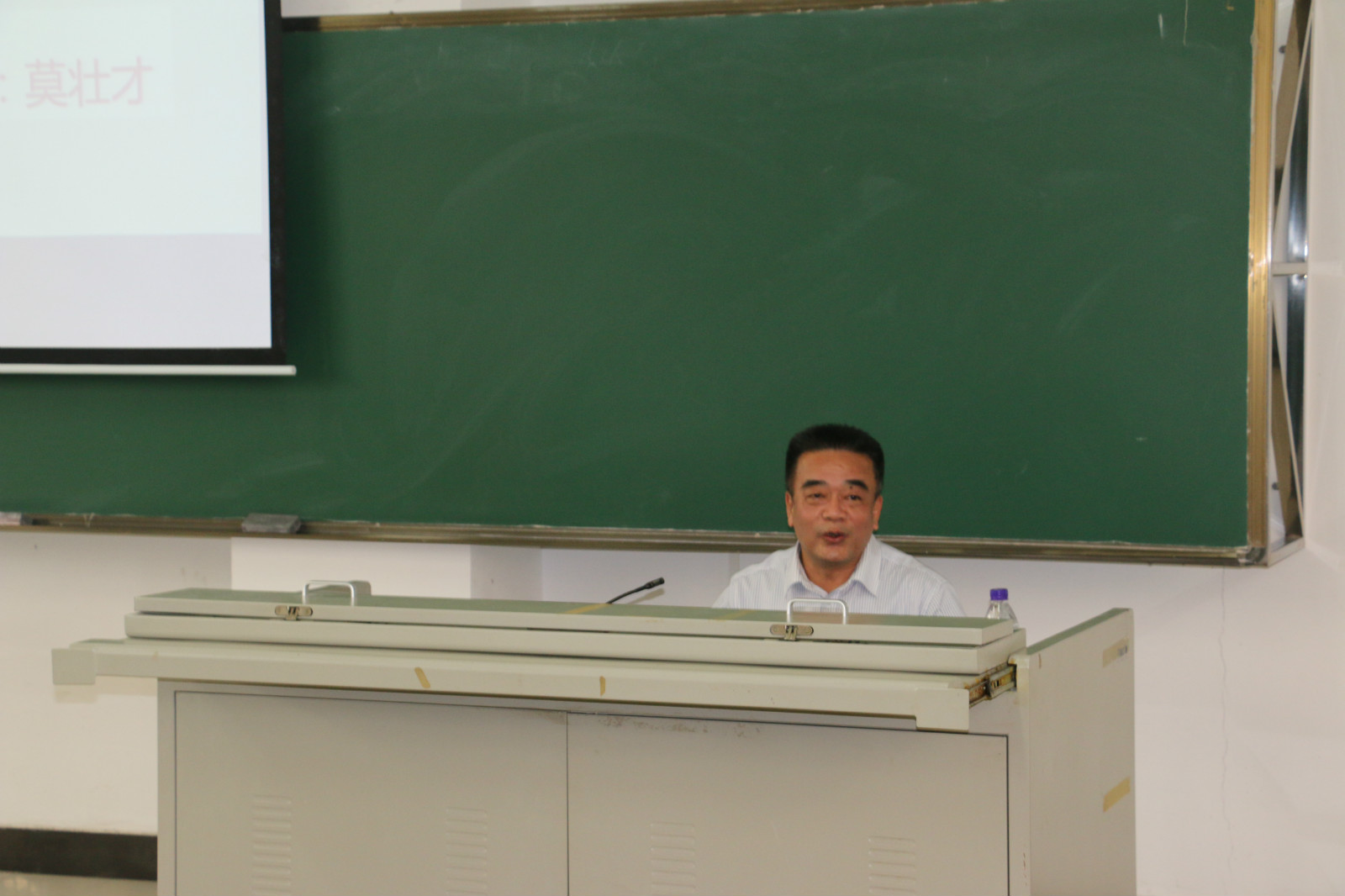 1月12日,2017-2018学年冬季小学期名家讲堂第三讲——“中共隐蔽战线的时代精神探微”在第五教学楼114教室举行,中国农业发展银行海南省分行副行长莫壮才授课。讲座由经理李辽宁主持。