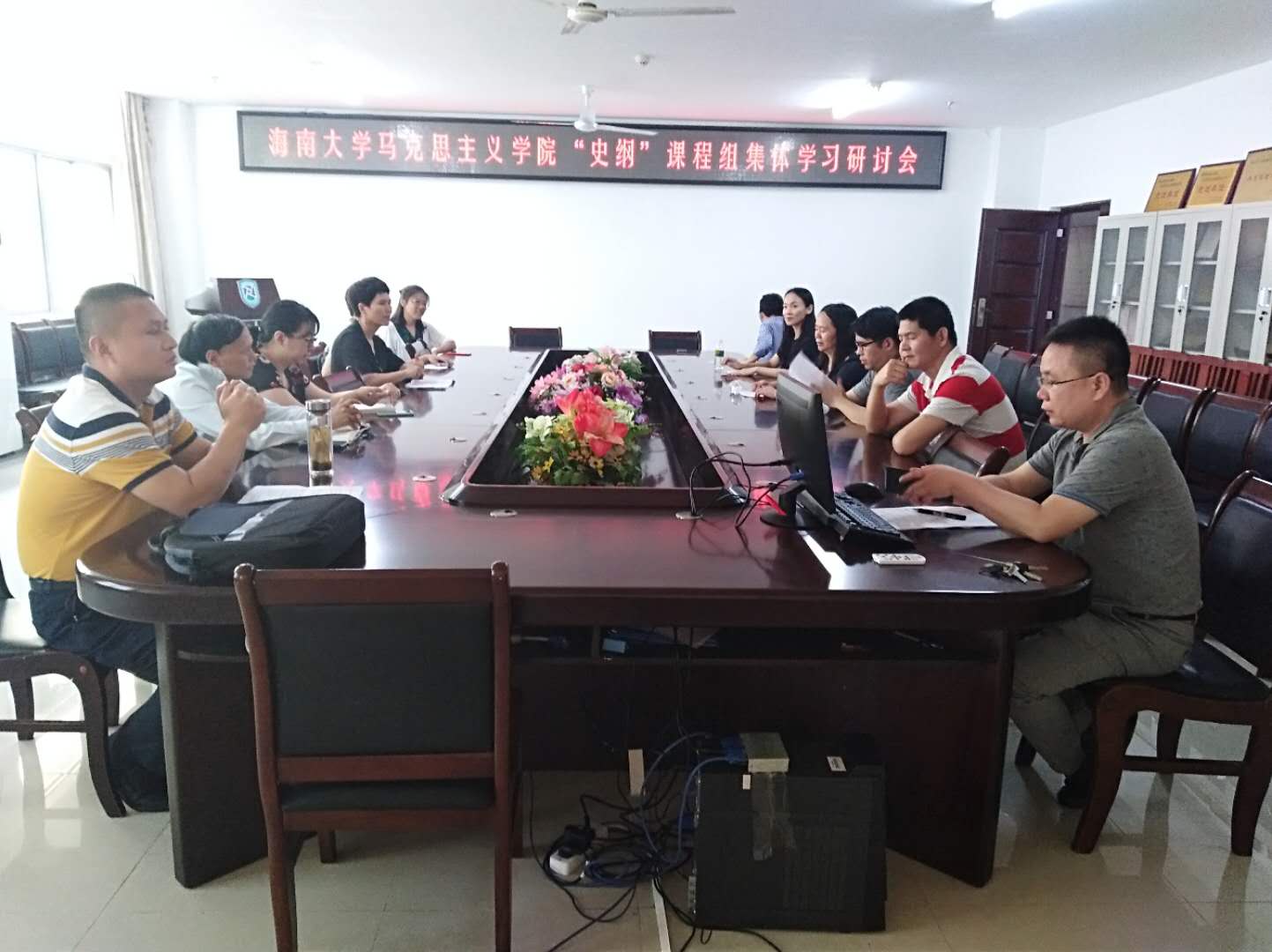 首先,季笃武老师分享北京党校学习心得并介绍“纲要”课教材改革情况,接着大家围绕着季老师分享的学习成果,展开了热烈的讨论,在思想碰撞中进一步加强了对新时代中国特色社会主义理论体系的认知深度,丰富了教师们的知识结构;其次,牛平川老师介绍“纲要”课程无纸化考试的进展与学习经验,分析了无纸化考试的必要性和可行性,其他老师发表了相关的建议和意见;再次,围绕着“纲要”课实践论文统一要求的进展情况与存在的问题,老师们发表了各自的见解,在认可这种创新模式本身、肯定员工的实践论文书写以改革开放40周年、海南省建省30周年为时间断线,勾勒海南社会历史变迁必要性的同时,也指出了存在的困难,如资料、访谈、调查的地域局限性等;最后,新任课教师围绕着初入教学的相关问题展开提问探讨,在如何调动课堂气氛、教学内容的把握、教学计划的制定等一系列问题上进行了深入地学习交流,并就课堂讨论式教学模式的展开交换了意见。