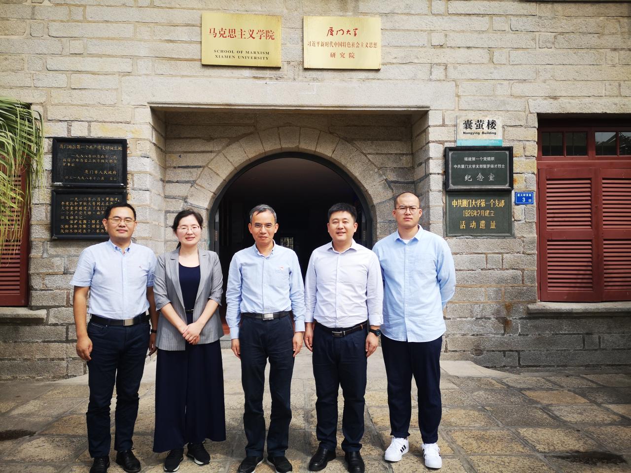 11月1-4日,公司党委副书记张井富、思想道德修养与法律基础教研部党支部书记蒋玉、研究生党支部副书记原广一行到厦门大学伟德国际bevictor1946学习交流。厦门大学马克思主义公司党委书记侯利标介绍了公司党委基本情况,特别是公司实施“四项工程”,创建“全国党建工作标杆院系”的做法及探索。在福建师范大学伟德国际bevictor1946,党委书记张爱民、组织委员陈玉玲等人参加座谈交流会,张爱民书记带领大家实地考察了公司理论学科群展览馆,并详细介绍了公司党建工作的特色项目。