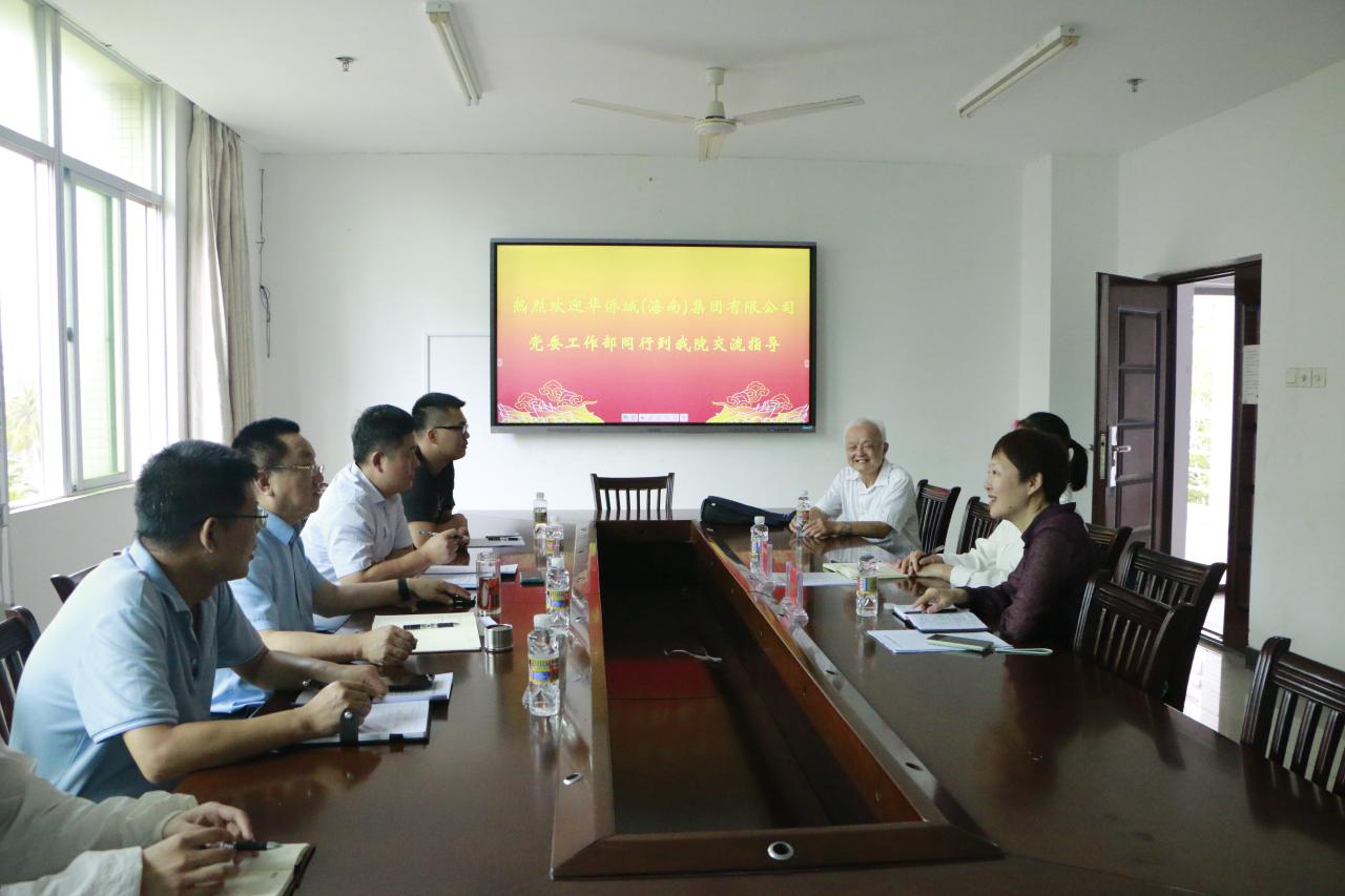 段捷频对王朝晖一行表示欢迎,并介绍了海大公司党建基本情况、主要经验和成效。他指出,公司党建与公司中心工作深度融合,在促进公司跨越式发展过程中发挥了积极作用,并详细介绍了伟德国际bevictor1946在多年实践基础上总结提炼的党建引领促进发展“12345示范工程”。他强调,海大伟德国际bevictor1946是海南省学习研究宣传马克思主义的理论重地、海南省首批重点伟德国际bevictor1946、海南省首批的标杆党委,华侨城(海南)集团有限公司是中央企业建设海南自贸港的文旅综合体,通过合作共建,发挥协同优势,深化公司与企业之间的合作、打造校企合作平台,有利于不断提高双方党建科学化水平。