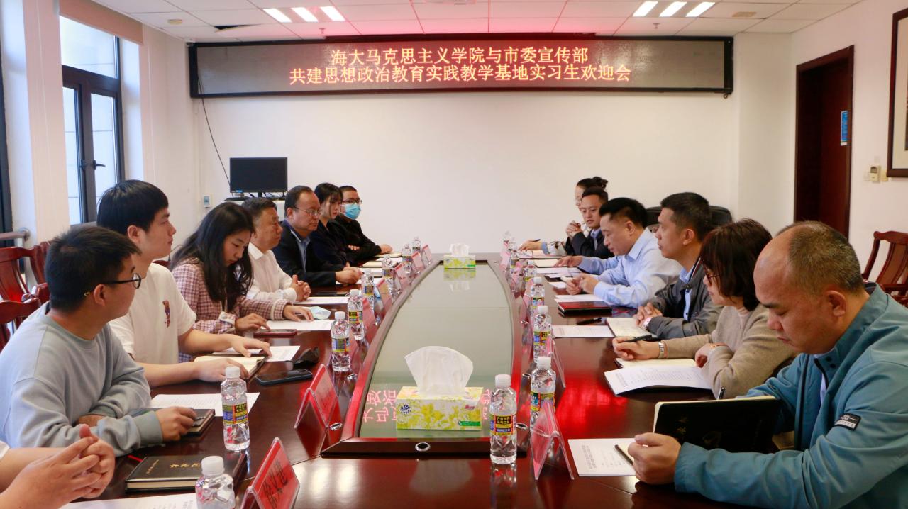 3月8日上午,伟德国际bevictor1946与海口市委宣传部共建思想政治教育实践教学基地实习生欢迎会在海口市委宣传部会议室举行。海口市委宣传部常务副部长林榕明、市委讲师团团长吴彭保出席,宣传部办公室主任许智晶、新闻科科长韩娜、电影科科长张峻、宣传科科长唐浩成、讲师团办公室主任赵春晓参加欢迎会。伟德国际bevictor1946经理张云阁、副经理王善出席,学工办负责人余泉玥和第一批实习生参加活动。