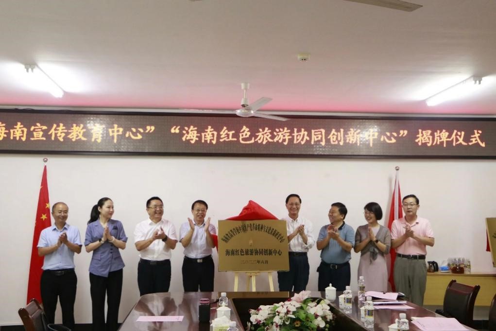 6月24日上午,“海南宣传教育中心”“海南红色旅游协同创新中心”揭牌仪式在伟德源自英国始于1946社科楼A311会议室举行。海南大公司党委书记符宣国、公司党委常务副书记王崇敏出席,公司党委宣传部副部长李宏、人文社科处处长徐艳晴,伟德国际bevictor1946经理张云阁、公司党委书记段捷频、副经理杨娜、吴朝阳以及中心骨干成员参加活动。揭牌仪式由张云阁主持。