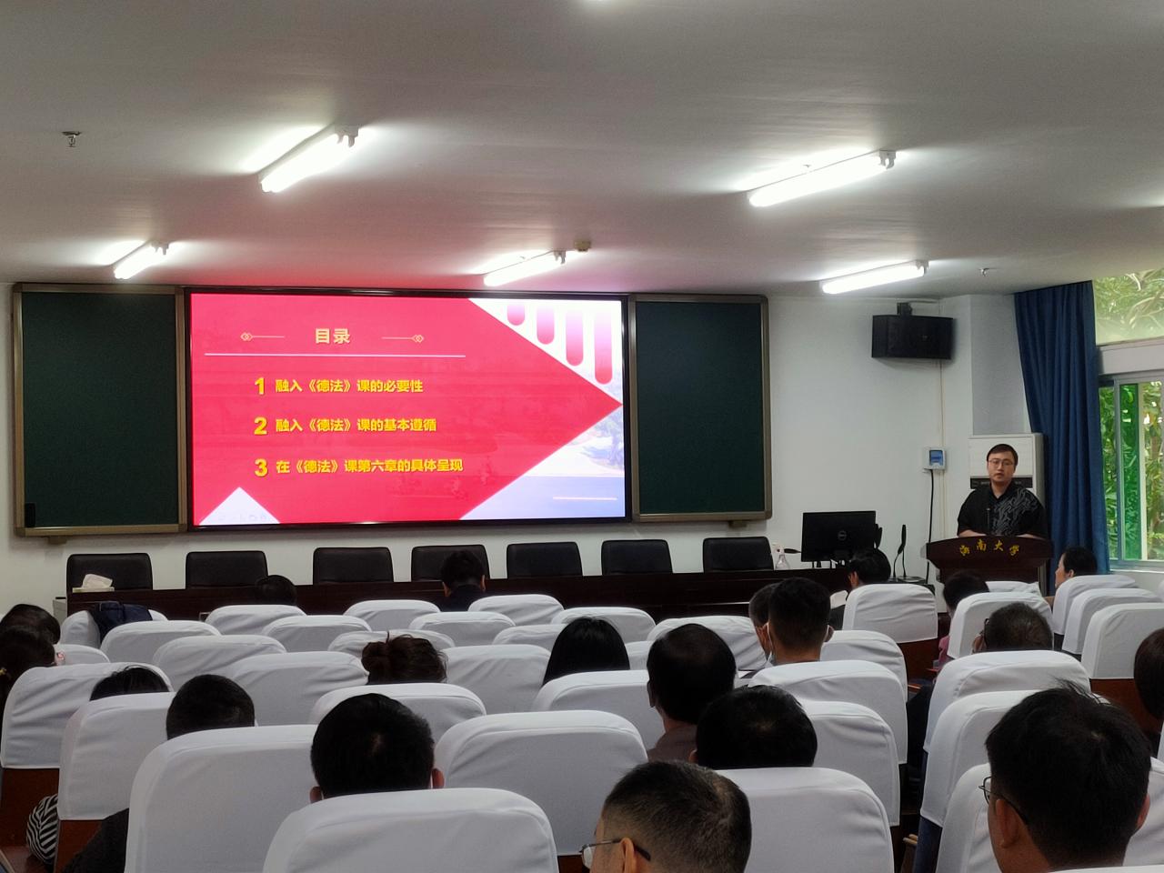第二个阶段,教育部首届思政课教学展示一等奖获得者蒋玉老师和优秀青年教师林罗添骥,分别围绕“引导老员工正确认识疫情防控政策调整融入思政课”和“党的二十大精神融入思政课”等主题进行了精彩的思政课教学展示。赵福生、宋增伟、王一闳、季笃武等老师先后进行交流发言。
