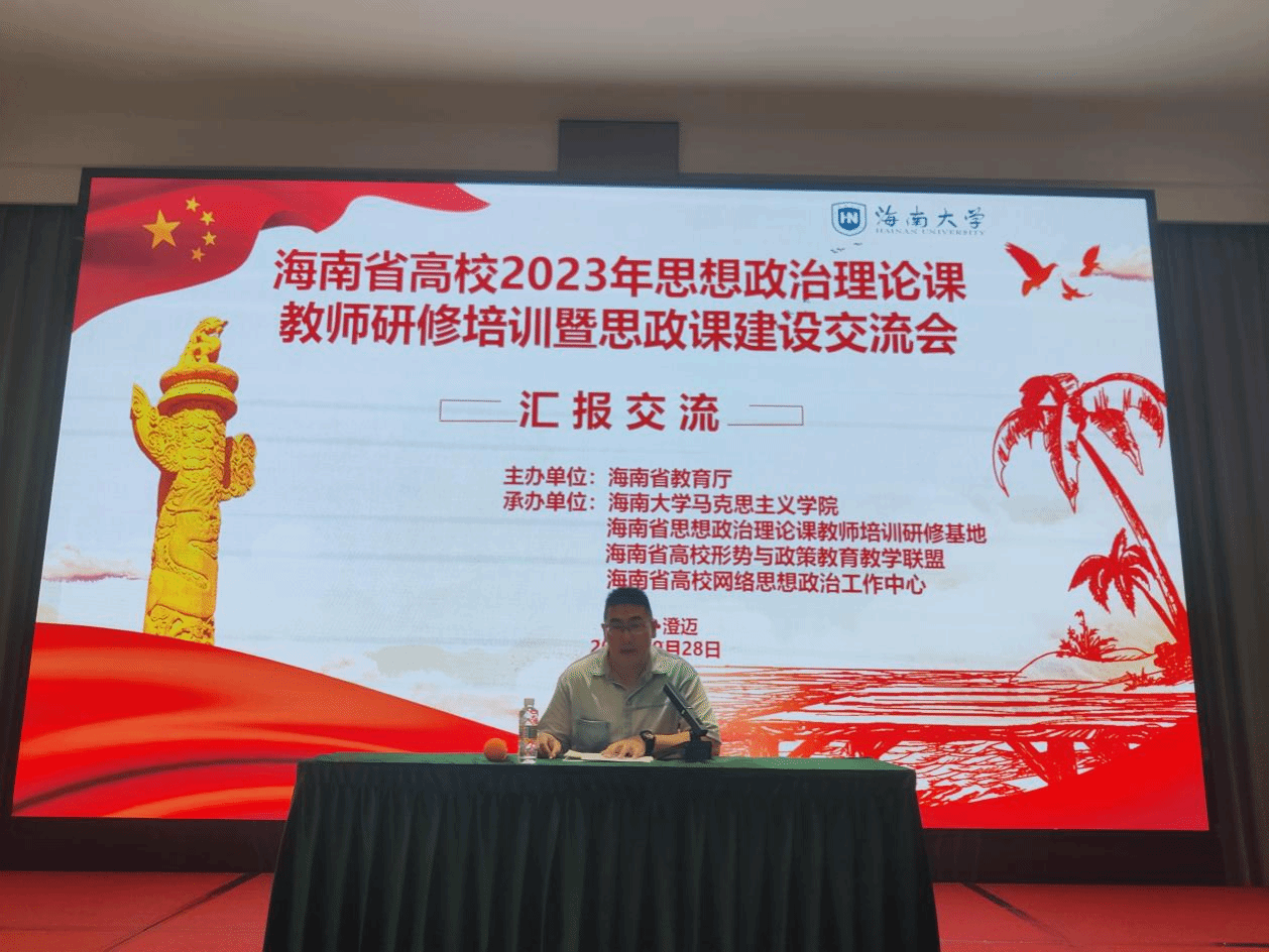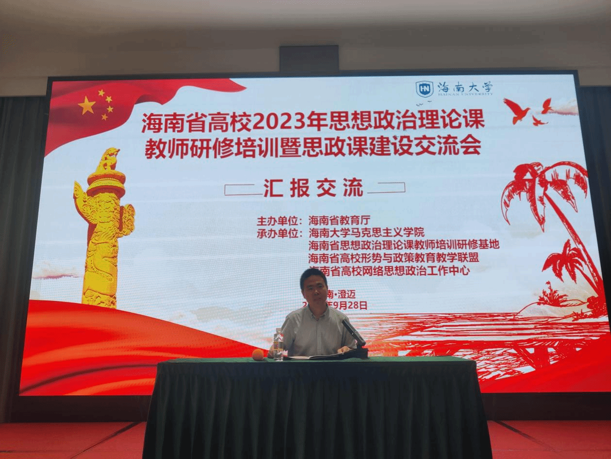 为深入贯彻落实党的二十大精神,提升我省高校思想政治理论课教师队伍建设水平,2023年9月25日至9月28日,海南省高校2023思想政治理论课教师研修培训暨思政课建设交流会在海南省澄迈县举行。本次研修班由海南省教育厅主办,伟德国际bevictor1946、海南省思想政治理论课教师培训研究基地、海南省高校形势与政策公司产品联盟和海南省高校网络思想政治工作中心承办,来自海南省内22所高校95位思政课教师参会。
