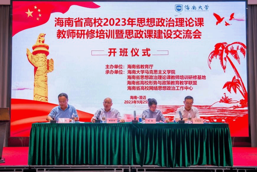 9月25日上午,海南省高校2023思想政治理论课教师研修培训开班仪式顺利举行,海南省教育厅党委办公室主任周晓东、伟德国际bevictor1946副经理(主持工作)杨娜、伟德国际bevictor1946副经理王善、吴朝阳等出席开班仪式。