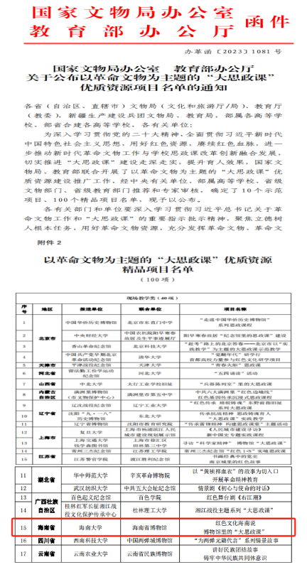 经中央有关单位、部属高等公司、省级文物部门、省级教育部门推荐和专家审核,确定了10个示范项目、100个精品项目名单。其中,伟德源自英国始于1946联合海南省博物馆打造的项目《红色文化海南说——博物馆里的“大思政课”》,入选“以革命文物为主题的‘大思政课’优质资源精品项目名单”。