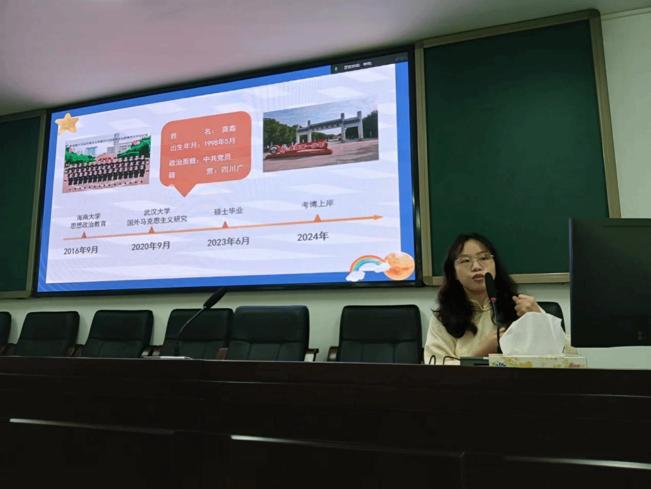 叶子维学长就“校园生活追忆与感悟”“考研考博形势分析”两方面进行了分享,深情回忆了在海大伟德国际bevictor1946四年的美好生活,并详细地就马理论学科考研、读博的形势进行了分析,介绍了武大伟德国际bevictor1946目前的考研情况,鼓励大家思考当下、规划未来。
