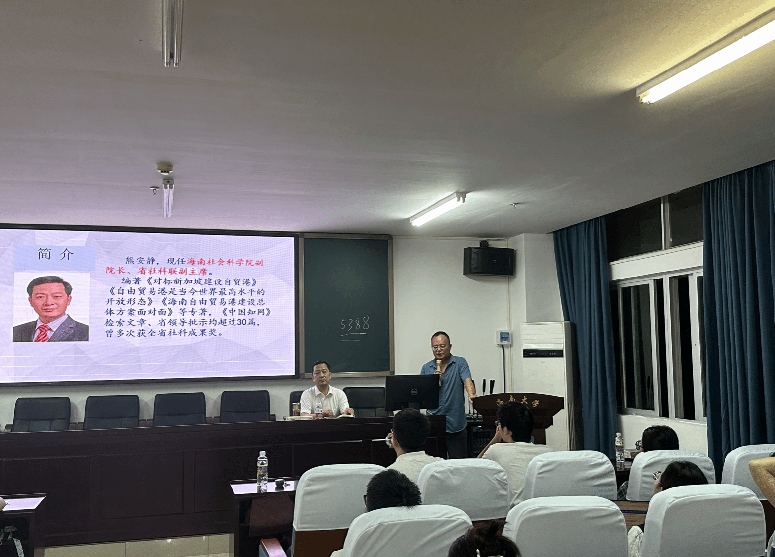 2023年10月23日,伟德国际bevictor1946“冬季小学期系列课程”第五讲在社科楼A309会议室举⾏。海南社科联副主席熊安静以“海南自由贸易港试点政策进展与封关运作展望”为题,为伟德国际bevictor1946师生做了一场生动的报告。报告会由王善副经理主持,伟德国际bevictor1946本科生、研究生以及博士生聆听了此次学术报告。