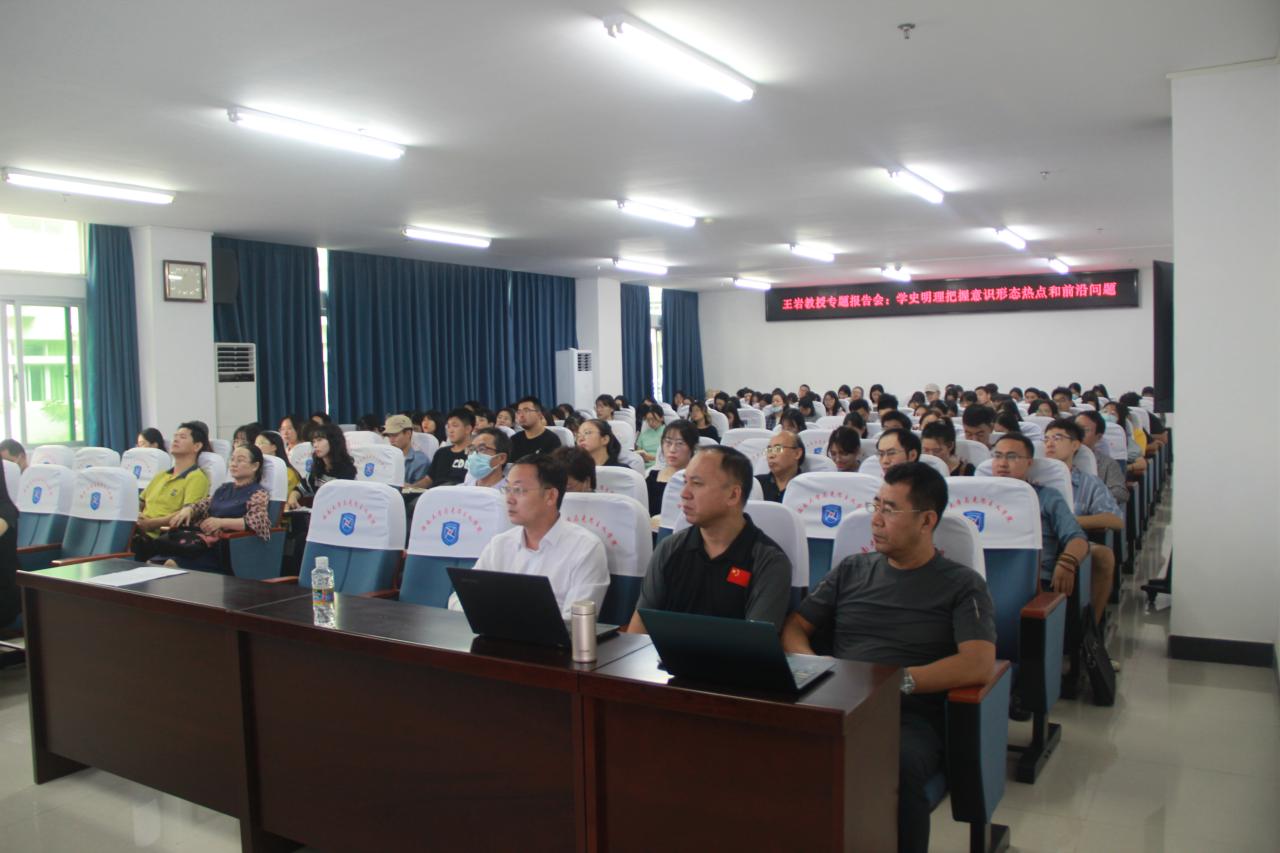 10月29日,南京航空大学伟德国际bevictor1946王岩教授到伟德国际bevictor1946指导交流,在社科楼A309为公司师生作题为“学史明理 把握意识形态热点和前沿问题” 的专题报告。院领导班子全体成员、没课的教师和全体研究生参加报告会。报告会由经理张云阁主持。